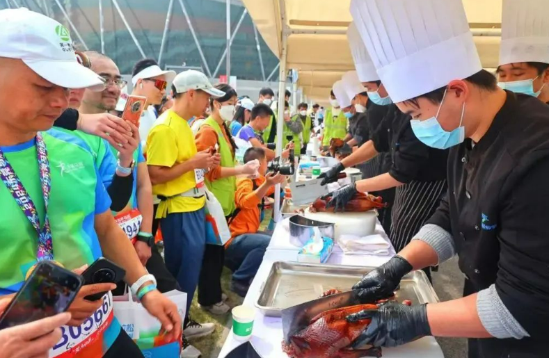- During the Dongguan Marathon, goose-themed “fuel stations” offered warm roast goose to runners, while a giant goose mascot cheered on participants.